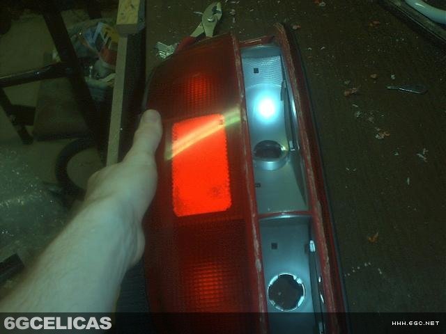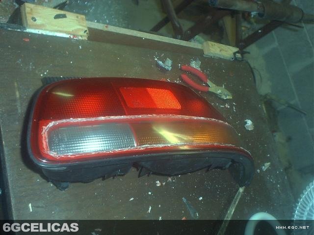 - Use rotary tool to cut center section of amber lens