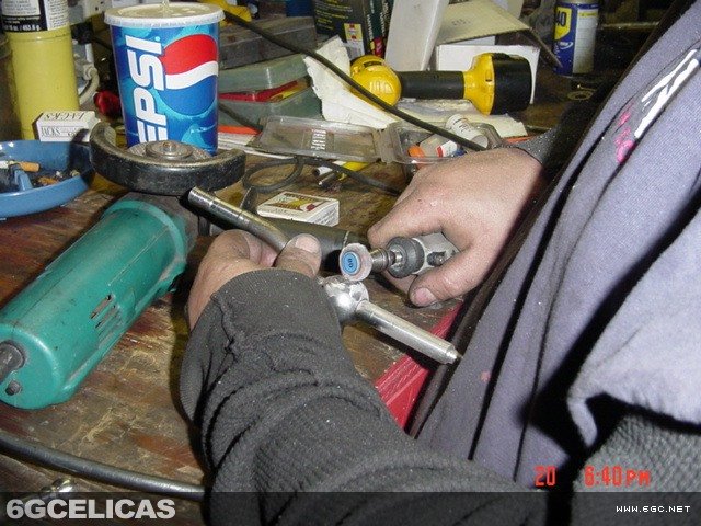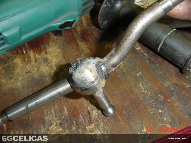 - Drill out pressed-in pin on side of shifter (as shown in photo)