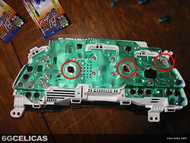 Transform your Celica's gauge cluster lighting from stock green to any color you desire. This simple modification requires only basic tools and colored Type-194 bulbs, providing an immediate visual upgrade to your interior's night illumination.
