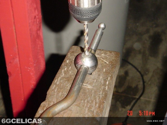 - Drill out pressed-in pin on side of shifter (as shown in photo)