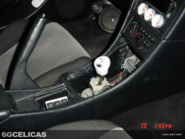 - Remove center console: two front screws + two 12mm bolts inside compartment