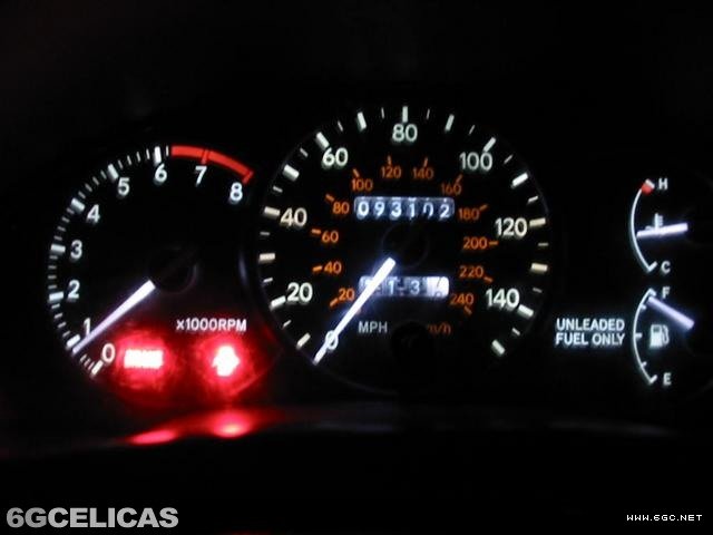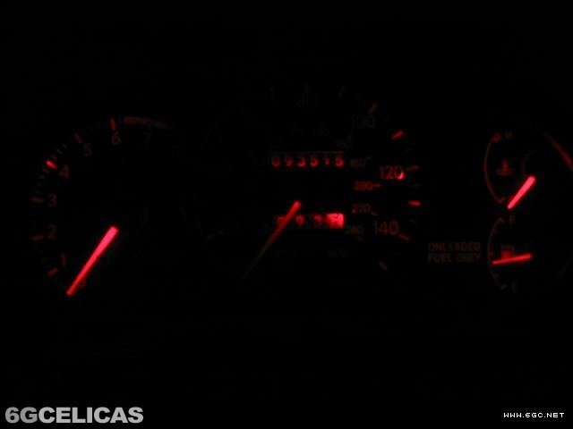 Transform your Celica's gauge cluster lighting from stock green to any color you desire. This simple modification requires only basic tools and colored Type-194 bulbs, providing an immediate visual upgrade to your interior's night illumination.