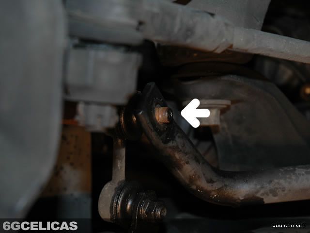With wheels removed, you can easily access the sway bar end link bolts. The end link is the piece that connects the end of the sway bar to the lower control arm via two bolts. The bolt you want to remove is the upper one that connects directly to the sway bar.